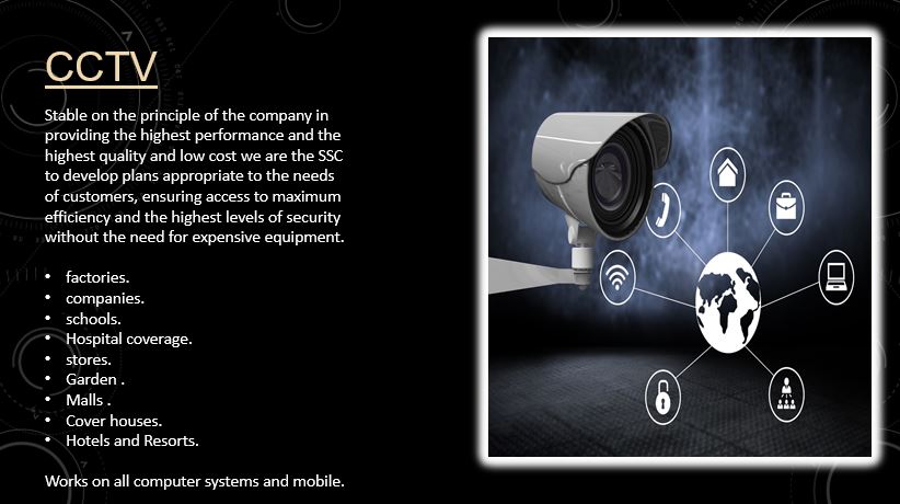 Smart systems are the best way to keep businesses and individuals safe. Smart Solutions also has extensive experience in establishing and connecting wireless and wired networks, CCTV systems, fire systems, early detection systems for thefts, web design, solar energy systems, interior and exterior finishes, and technical and engineering consultancy for companies, factories and individuals